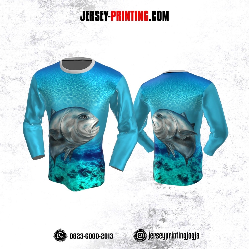 Jersey Mancing Fishing Angler Lengan Panjang Motif Bawah Laut Biru Tosca