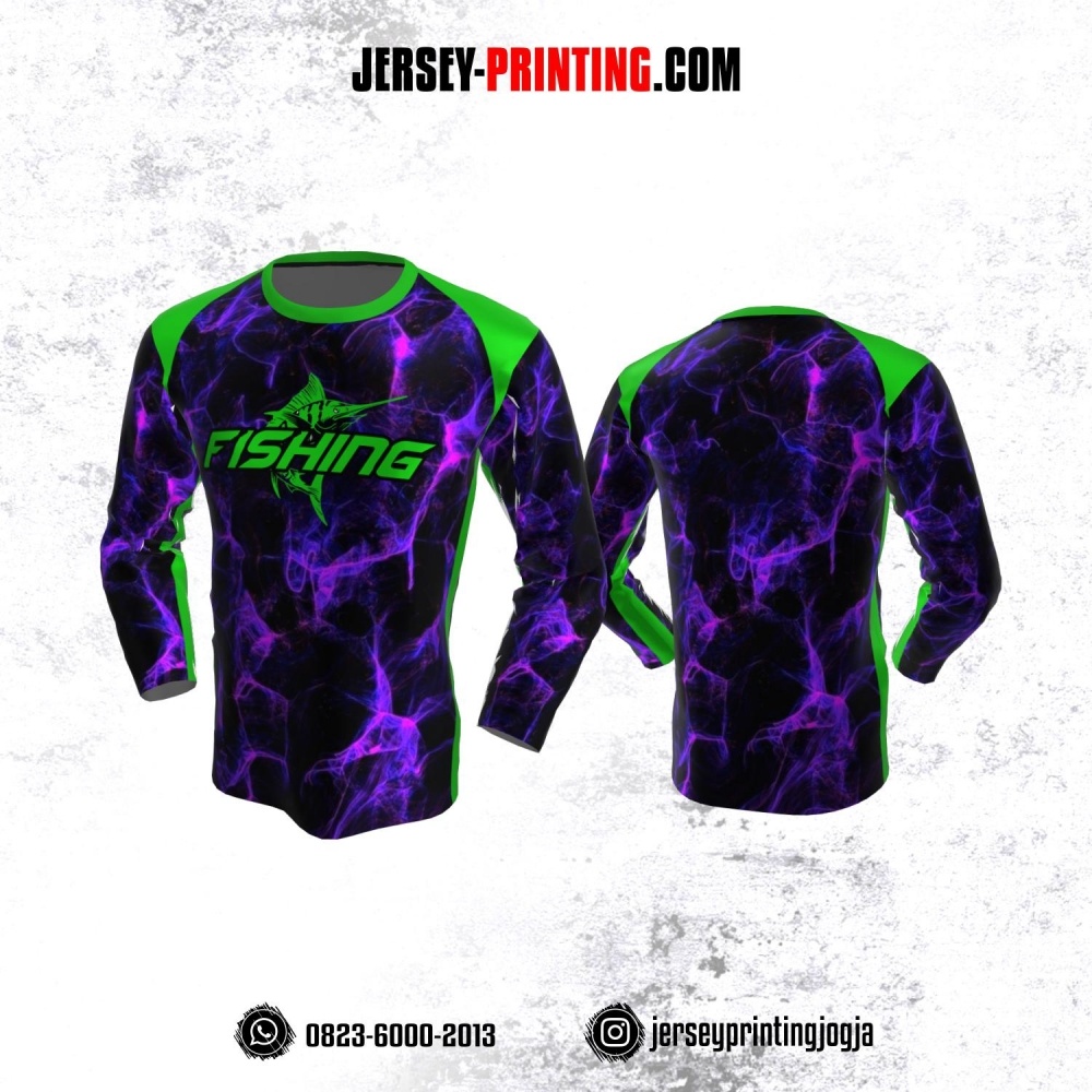 Jersey Mancing Fishing Angler Lengan Panjang Hitam Ungu Hijau Motif Abstrak