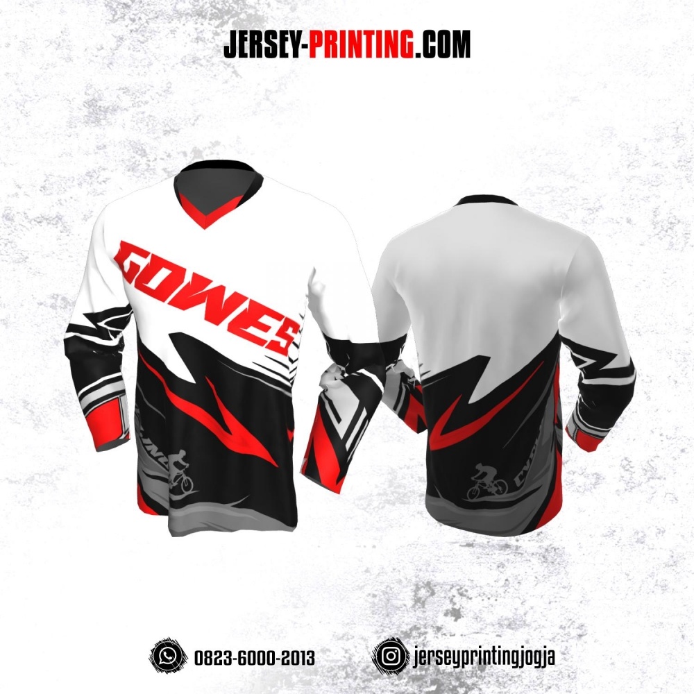 Jersey Gowes Sepeda Merah Putih Hitam Abu Lengan Panjang