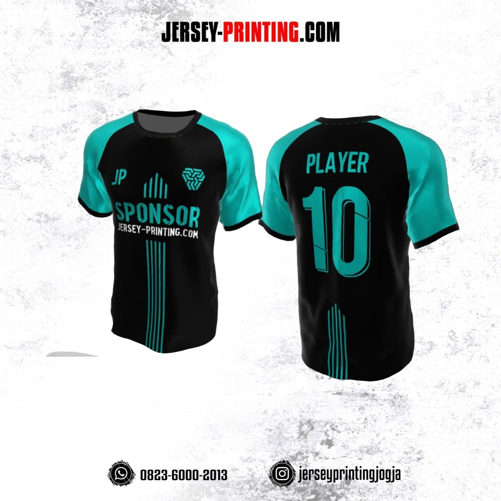 Jersey Atasan Badminton Volly Lari Futsal Hitam Tosca Motif Garis