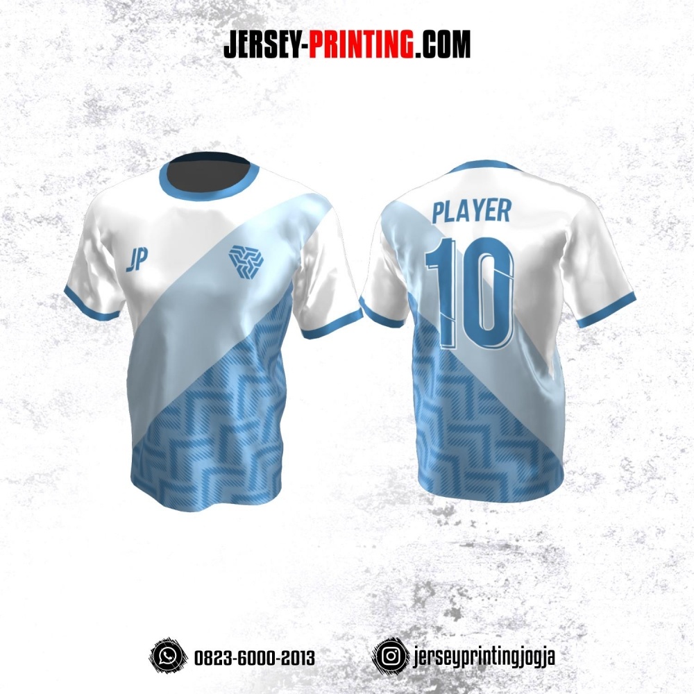 Jersey Atasan Badminton Volly Lari Futsal Biru Putih Motif Seamless