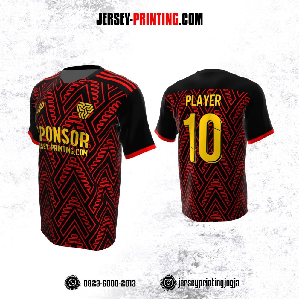 Jersey Atasan Badminton Volly Lari Futsal Hitam Motif Seamless Merah