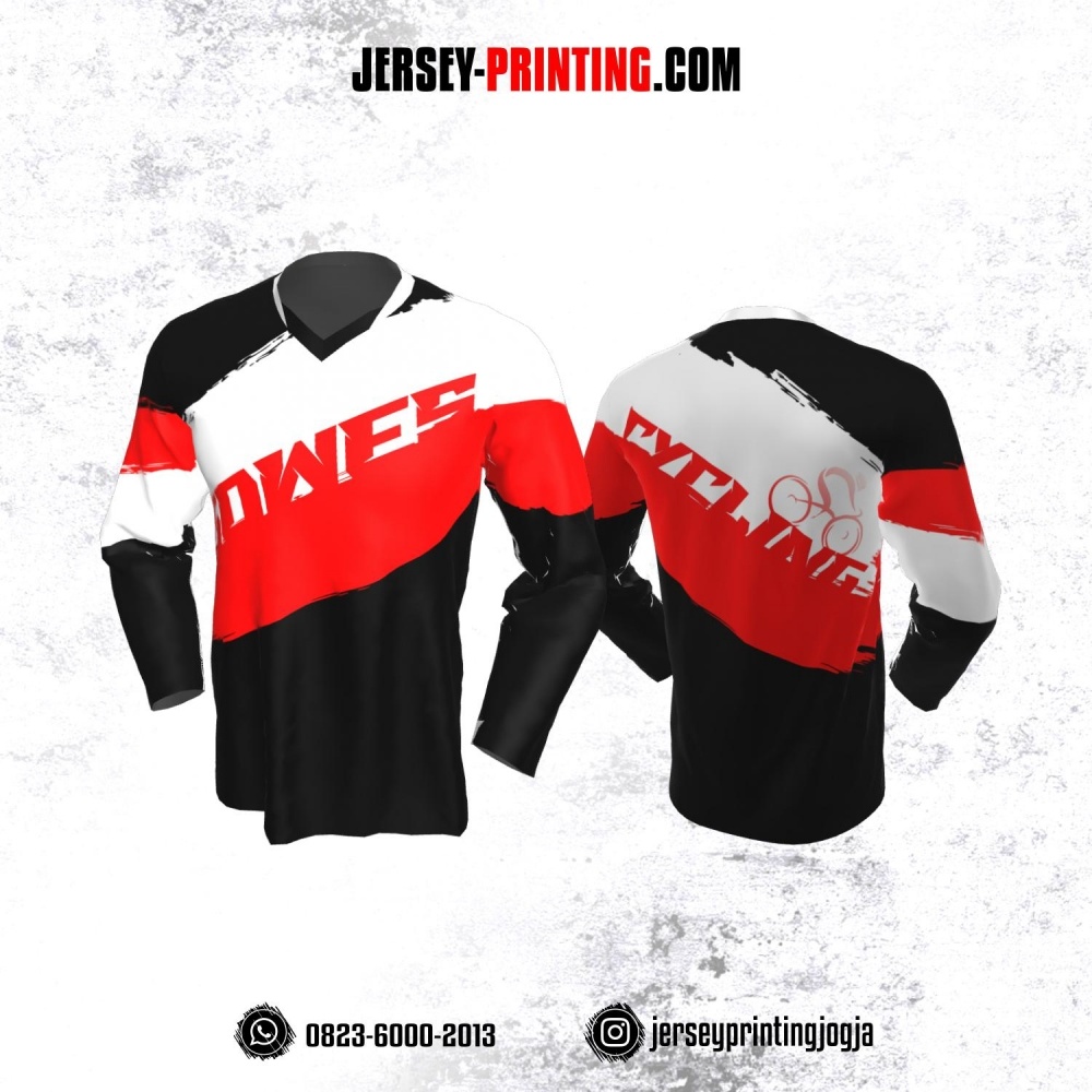 Jersey Gowes Sepeda Hitam Merah Putih Lengan Panjang