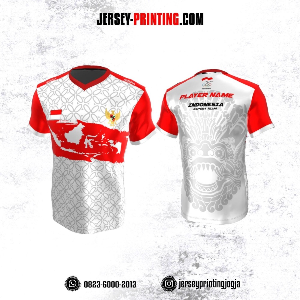 Jersey Atasan Badminton Volly Lari Futsal Putih Abu-abu Merah Motif Batik