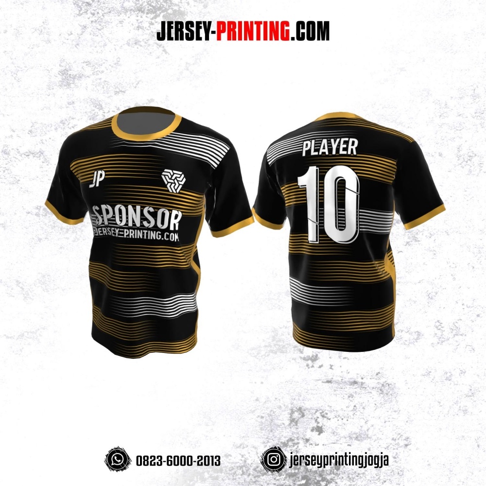 Jersey Atasan Badminton Volly Lari Futsal Hitam Motif Garis Emas Putih