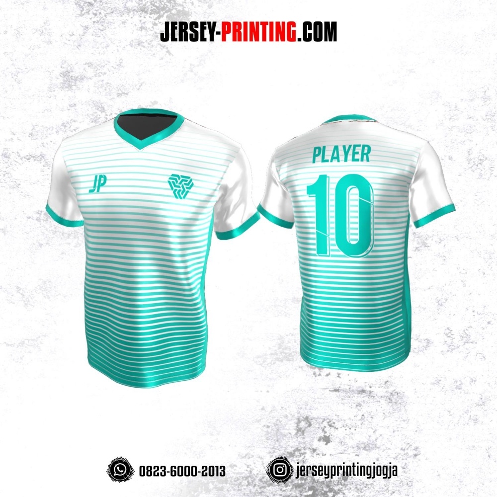 Jersey Atasan Badminton Volly Lari Futsal Putih Tosca Motif Stripe