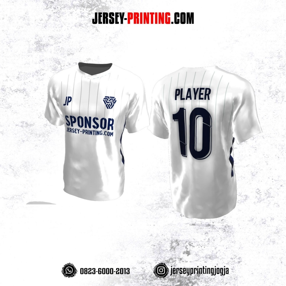 Jersey Atasan Badminton Volly Lari Futsal Putih Abu-abu Dongker Motif Garis