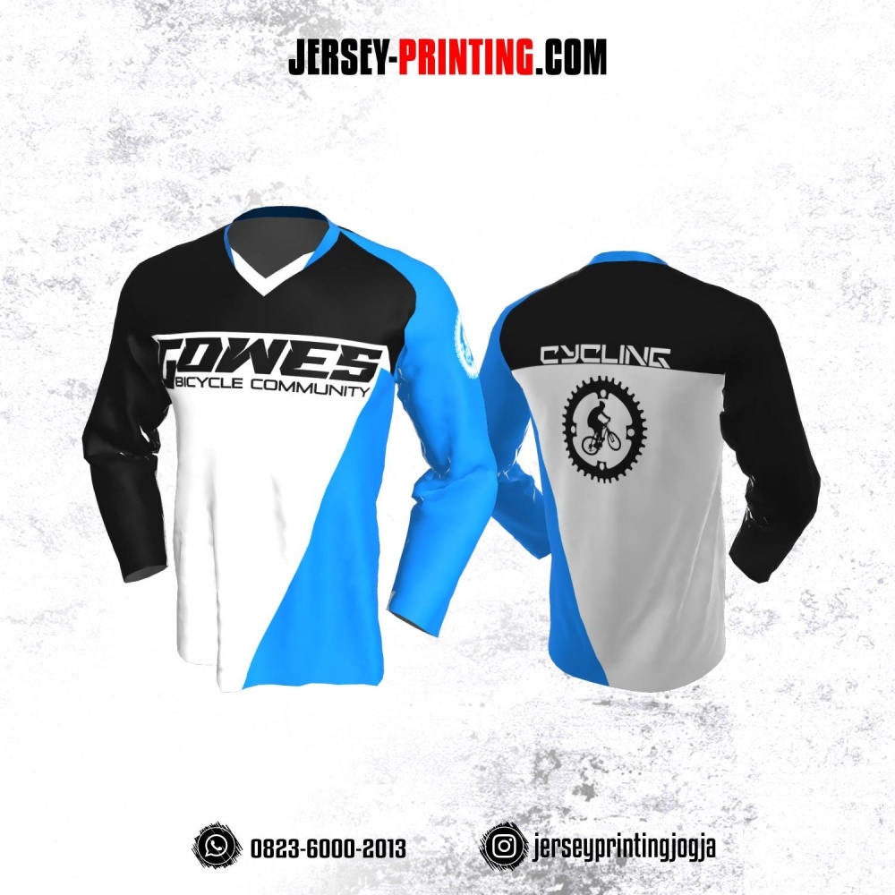 Jersey Gowes Sepeda Hitam Biru Putih Lengan Panjang