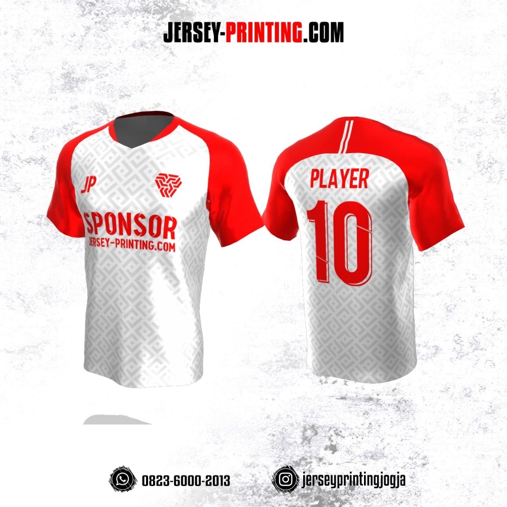 Jersey Atasan Badminton Volly Lari Futsal Putih Abu-abu Merah Motif Seamless