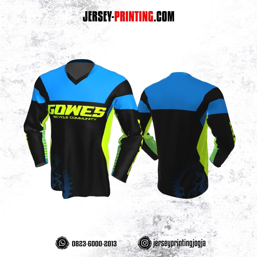 Jersey Gowes Sepeda Hitam Biru Hijau Lengan Panjang