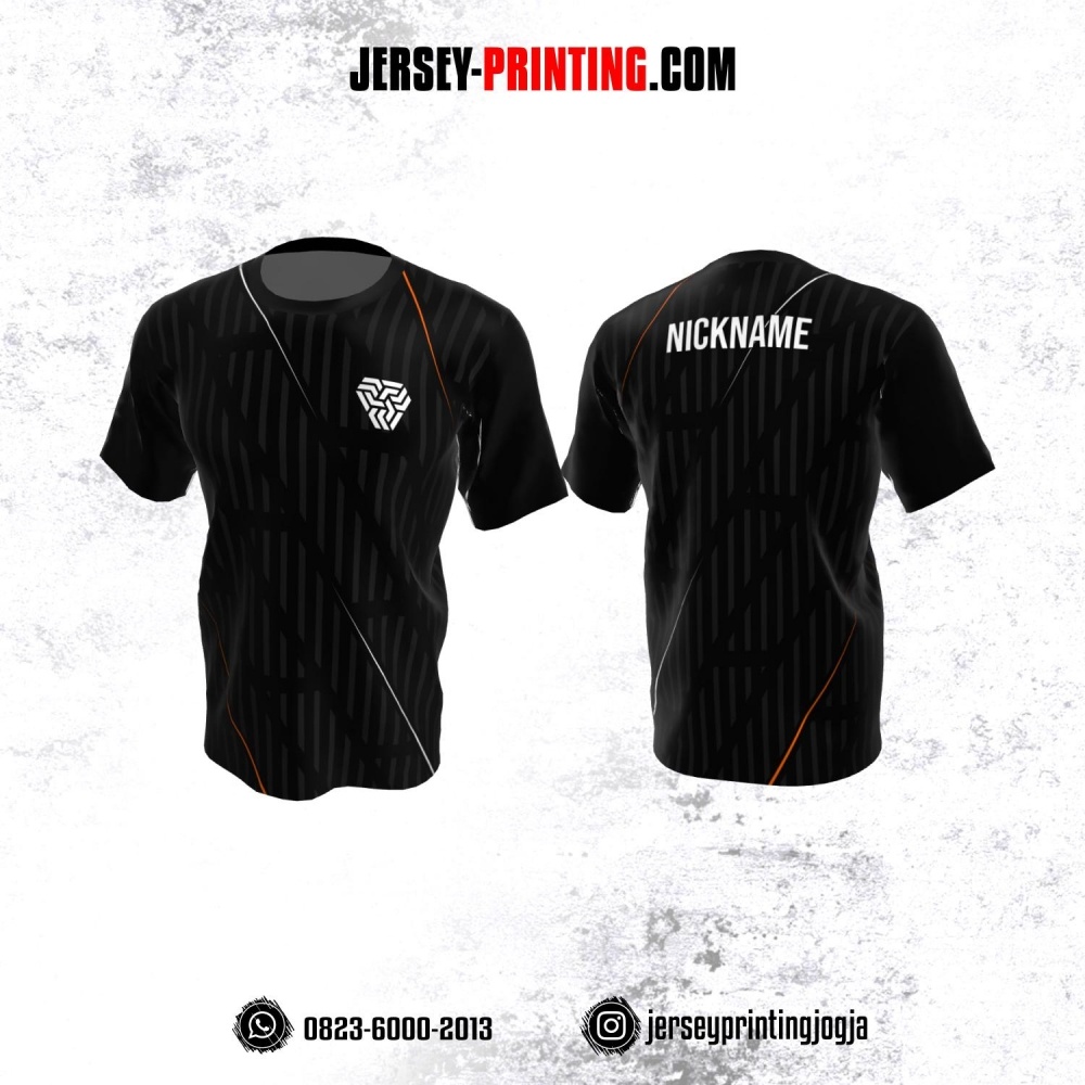 Jersey Atasan Badminton Volly Lari Futsal Hitam Abu-abu Putih Orange Motif Strip