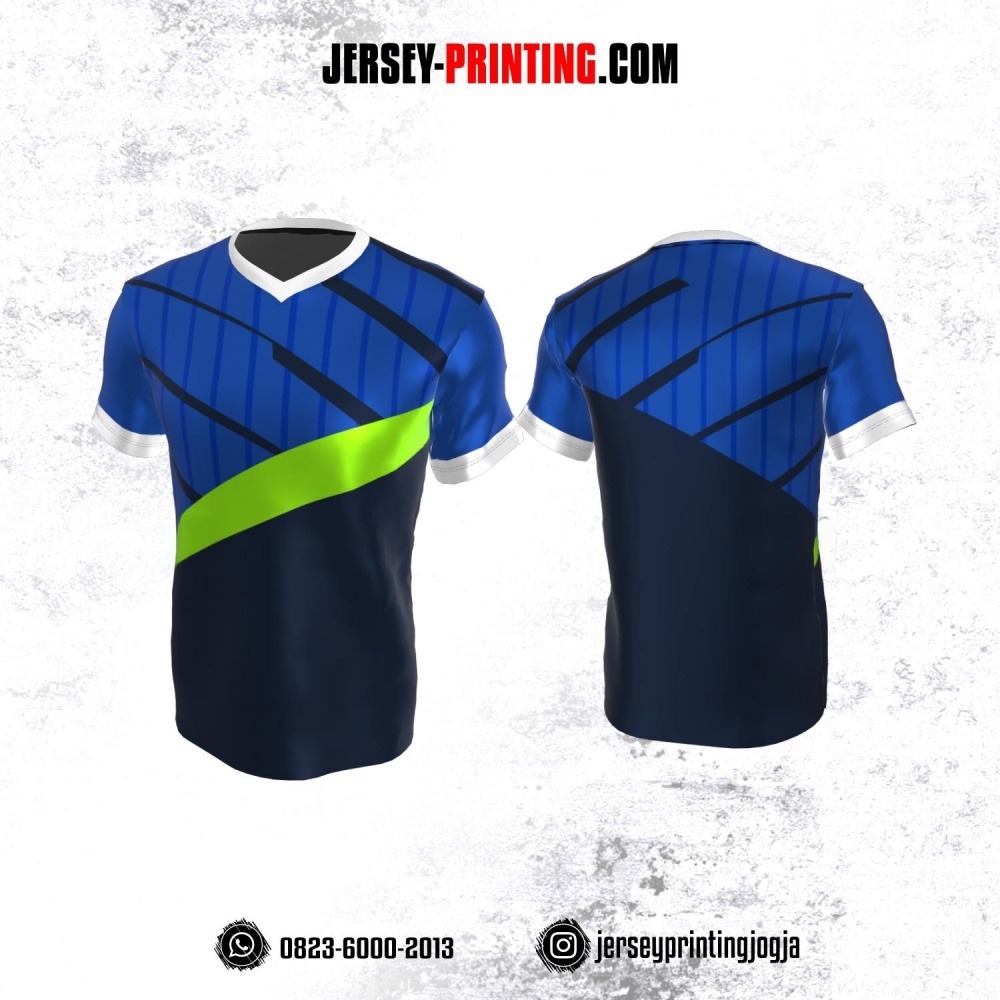 Jersey Atasan Badminton Volly Lari Futsal Biru Dongker Hijau Putih Motif Garis