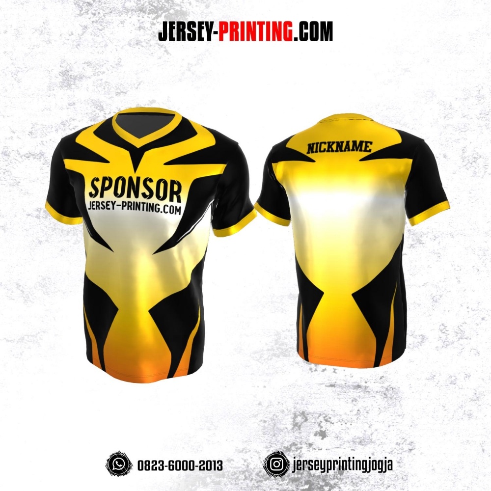 Jersey Atasan Badminton Volly Lari Futsal Kuning Corak Hitam Putih