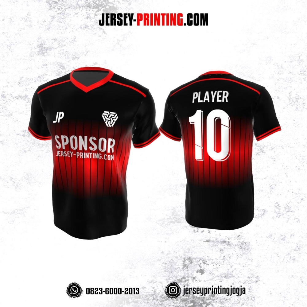 Jersey Atasan Badminton Volly Lari Futsal Hitam Merah Putih Motif Stripe