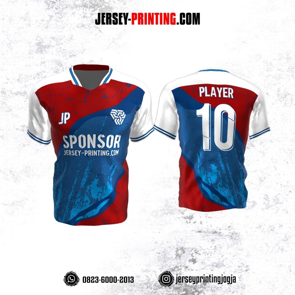 Jersey Atasan Badminton Volly Lari Futsal Biru Merah Putih Motif Brush