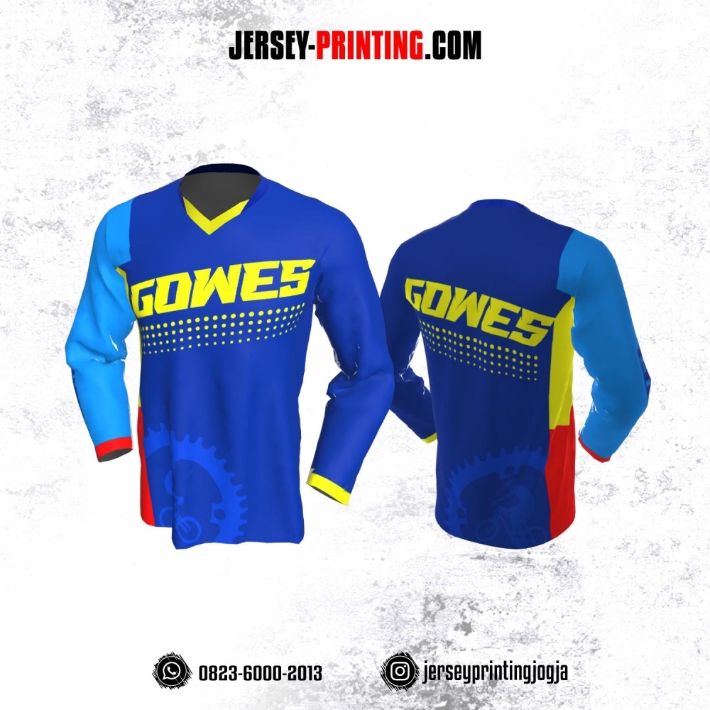 Jersey Gowes Sepeda Biru Merah Kuning Lengan Panjang