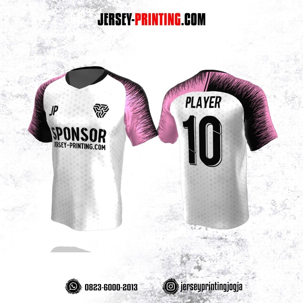 Jersey Atasan Badminton Volly Lari Futsal Putih Pink Hitam Motif Hexagon Abu-abu