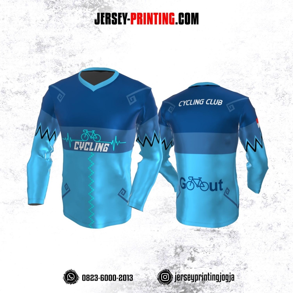 Jersey Gowes Sepeda Biru Navy Tosca Motif Zigzag Lengan Panjang