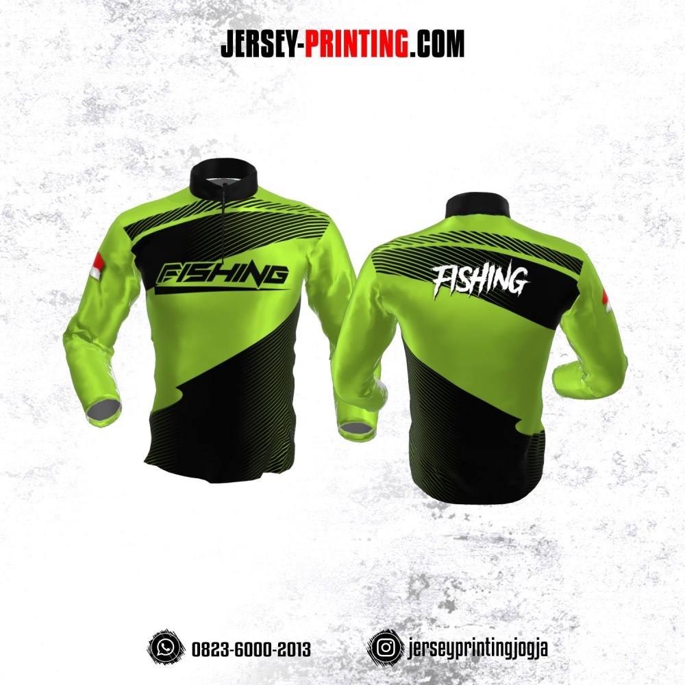 Jersey Mancing Fishing Angler Resleting Lengan Panjang Hijau Hitam Motif Garis
