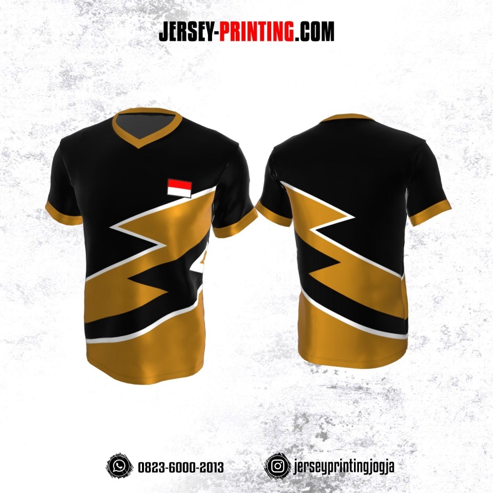 Jersey Atasan Badminton Volly Lari Futsal Hitam Corak Emas Putih