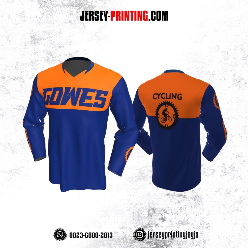 Jersey Gowes Sepeda Biru Orange Lengan Panjang