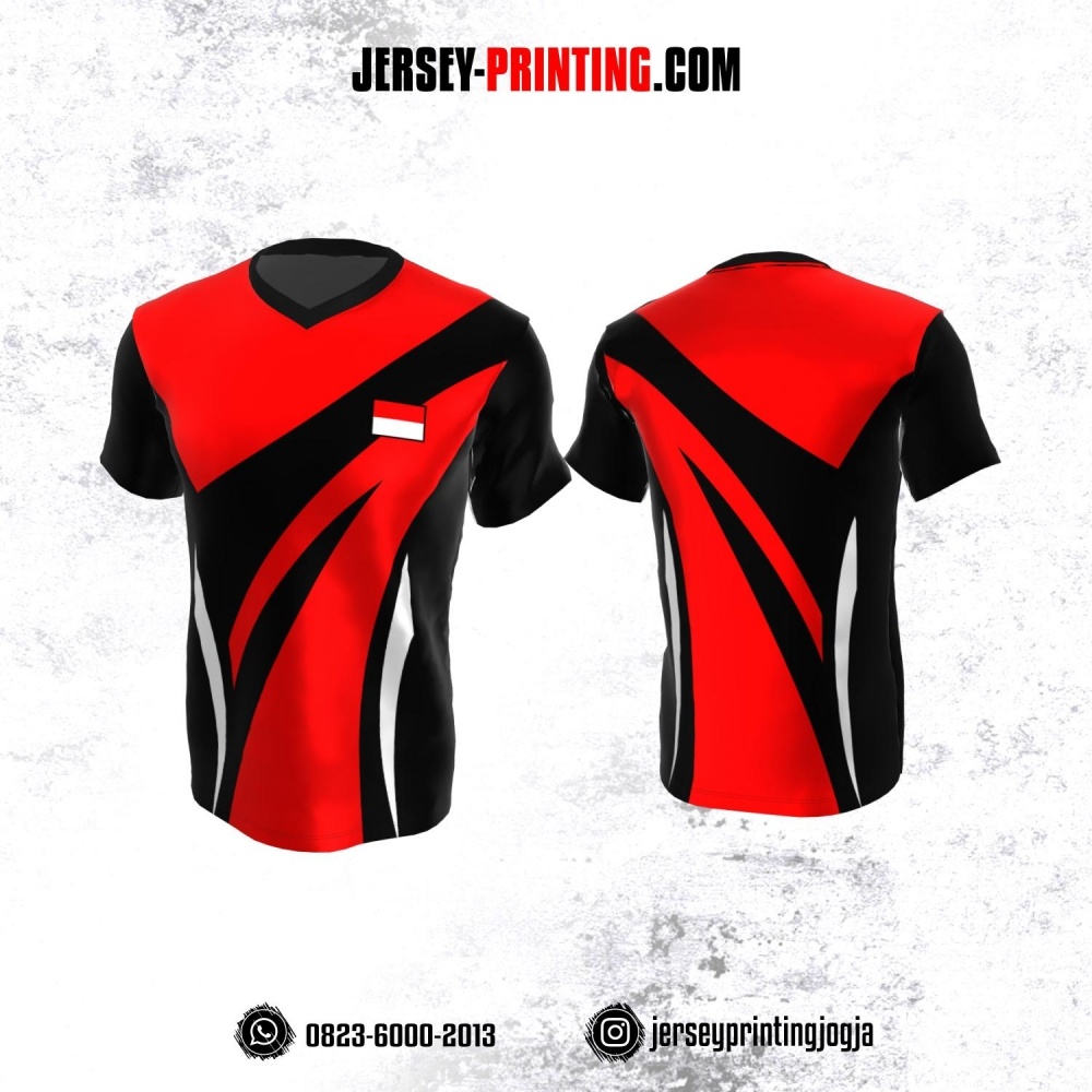 Jersey Atasan Badminton Volly Lari Futsal Hitam Corak Merah Putih