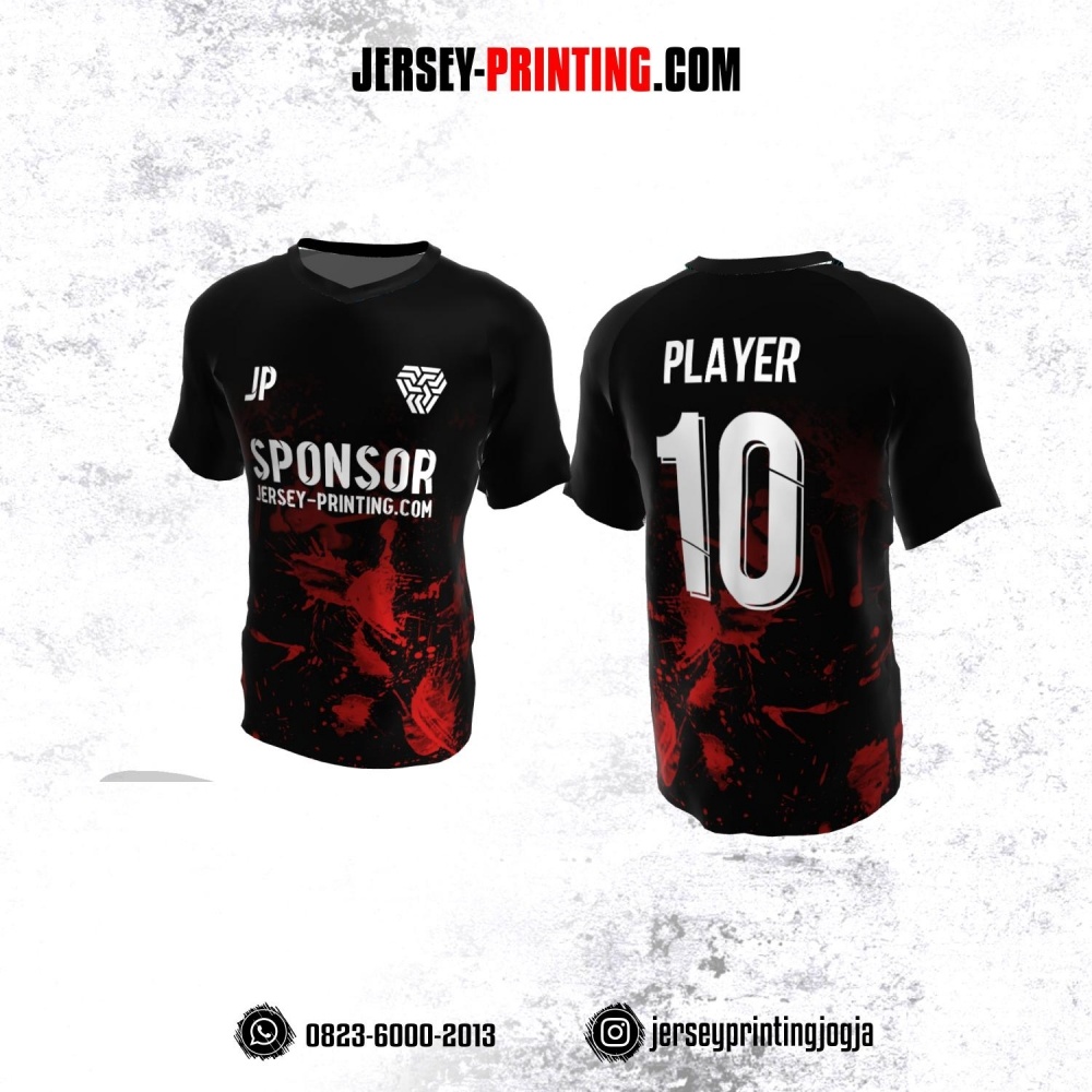 Jersey Atasan Badminton Volly Lari Futsal Hitam Motif Bercak Merah
