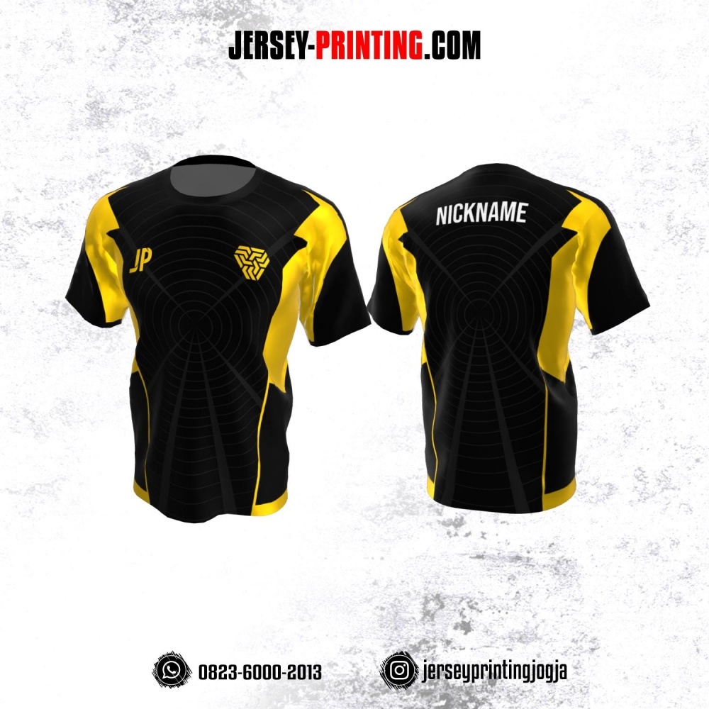 Jersey Atasan Badminton Volly Lari Futsal Hitam Kuning Abu-abu Motif Geometris