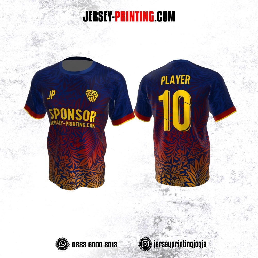 Jersey Atasan Badminton Volly Lari Futsal Navy Merah Orange Motif Floral