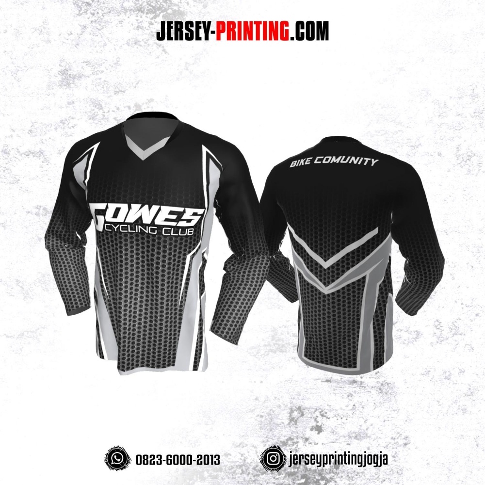 Jersey Gowes Sepeda Polkadot Hitam Putih Lengan Panjang