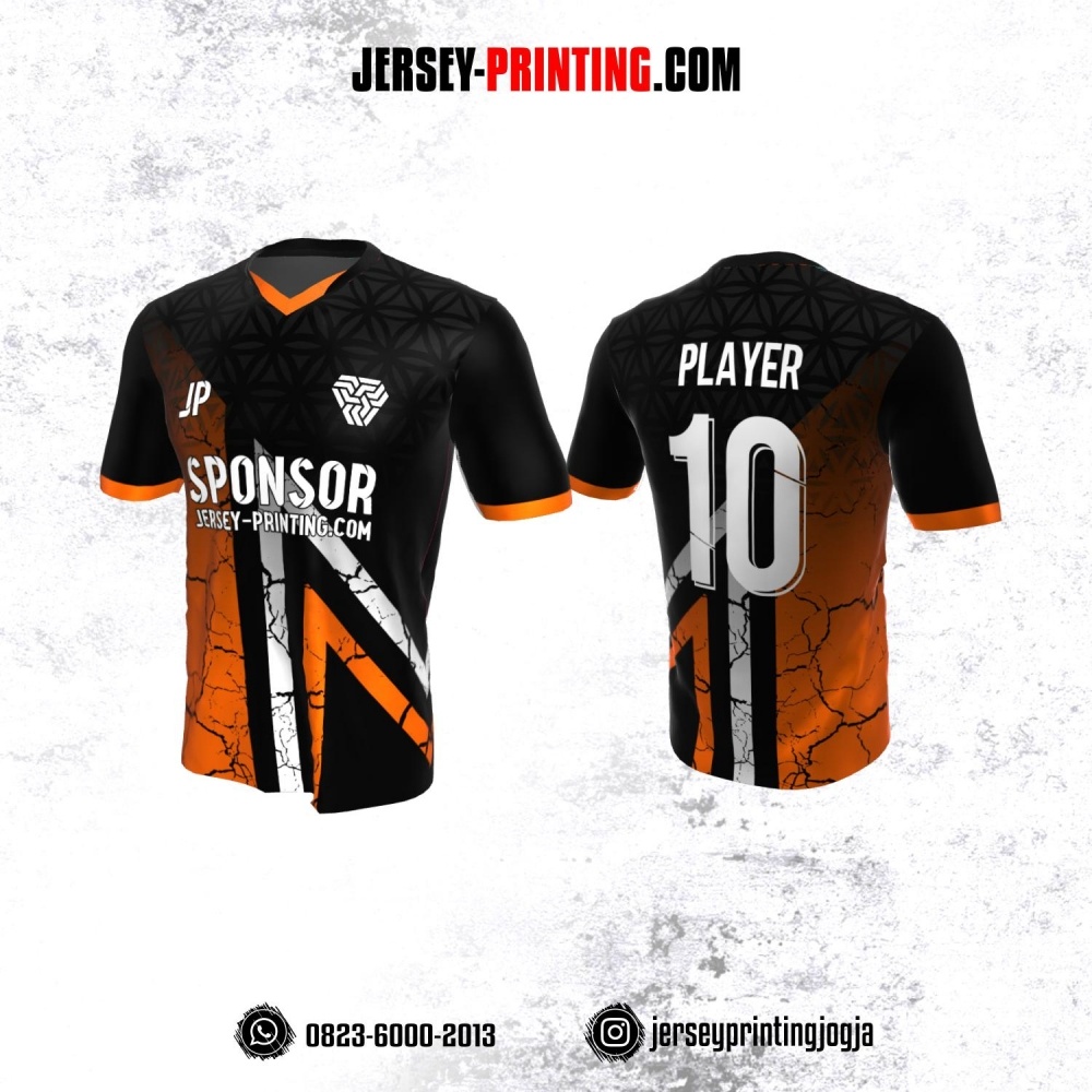 Jersey Atasan Badminton Volly Lari Futsal Hitam Orange Putih Motif Retak