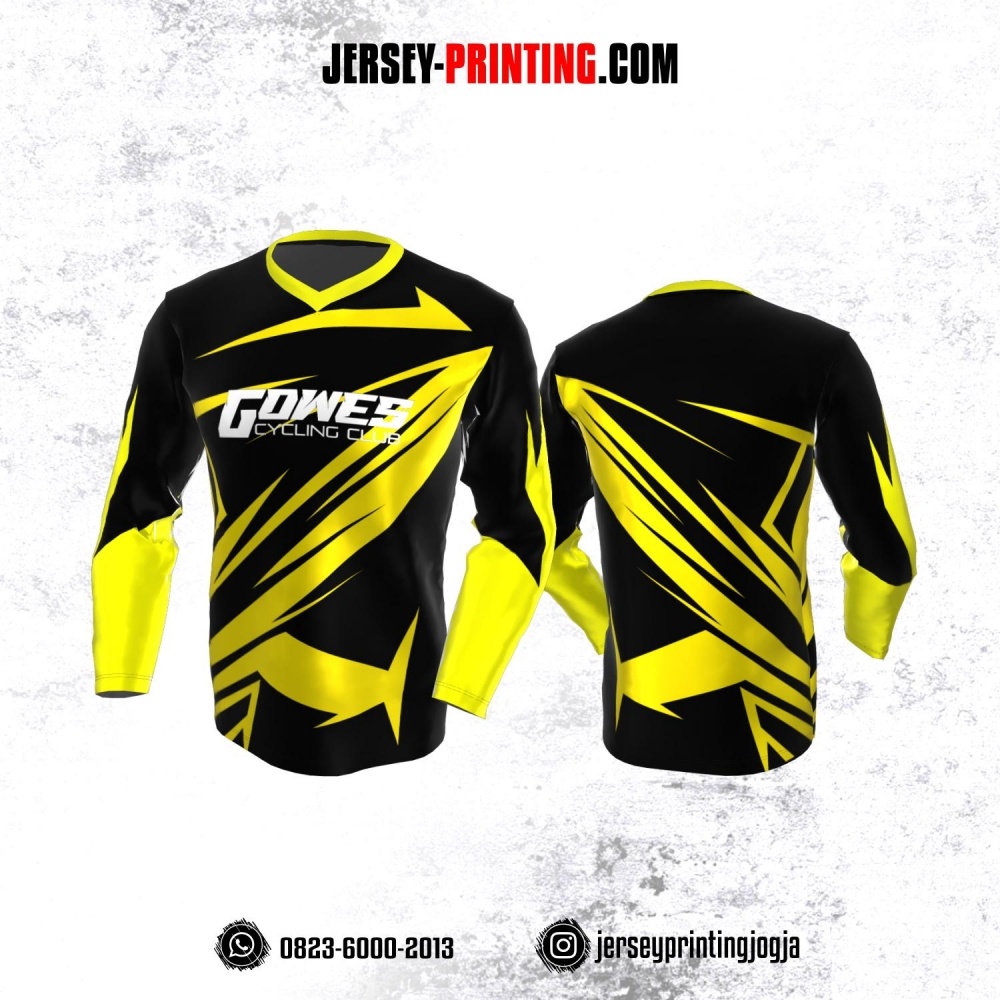 Jersey Gowes Sepeda Hitam Corak Kuning Lengan Panjang