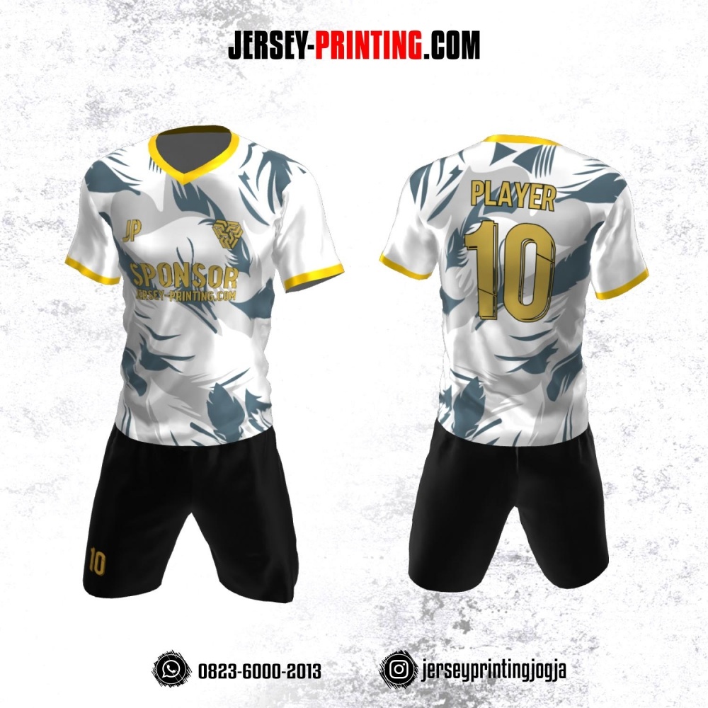 Jersey Futsal Putih Abu-abu Kuning Motif Abstrak