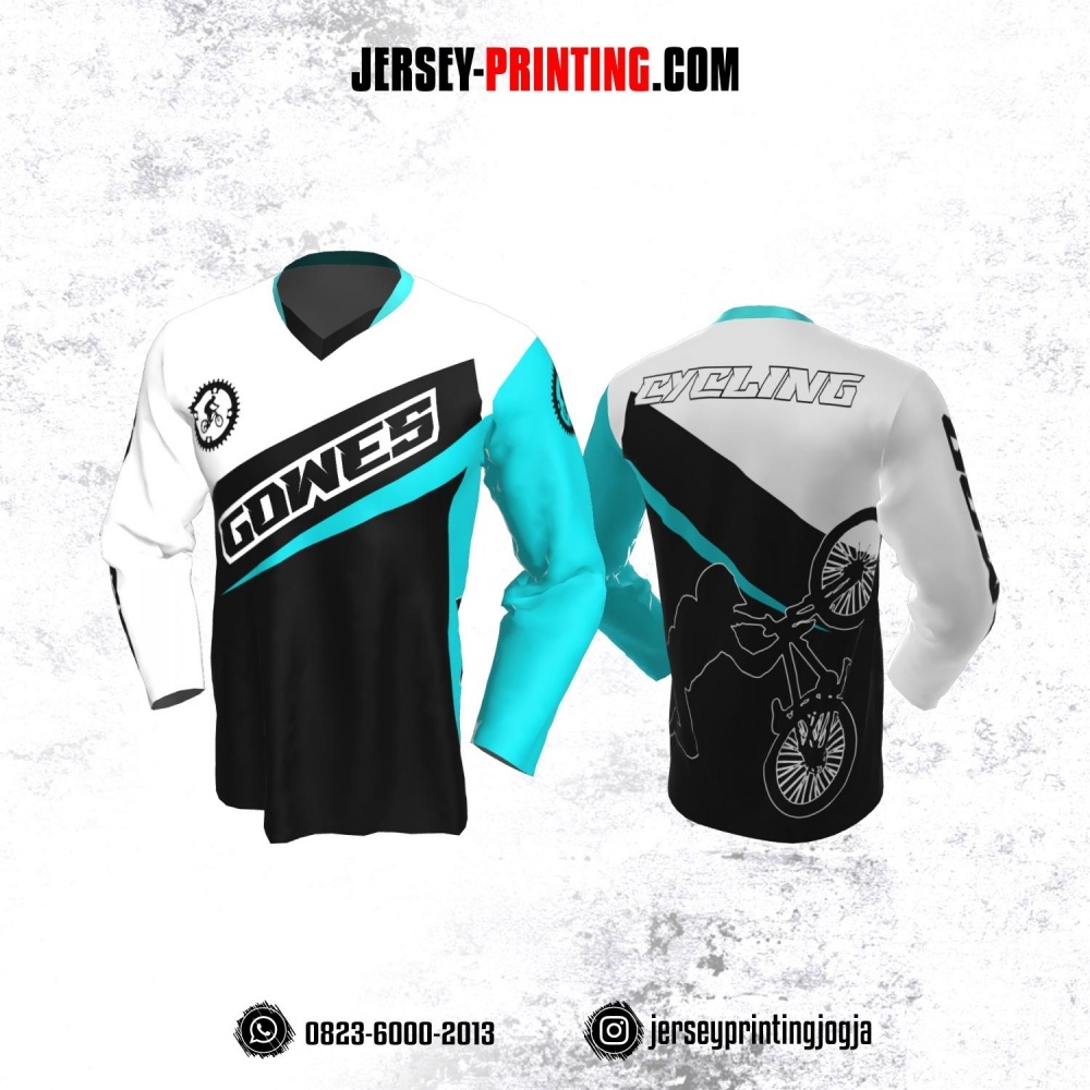 Jersey Gowes Sepeda Hitam Biru Putih Lengan Panjang