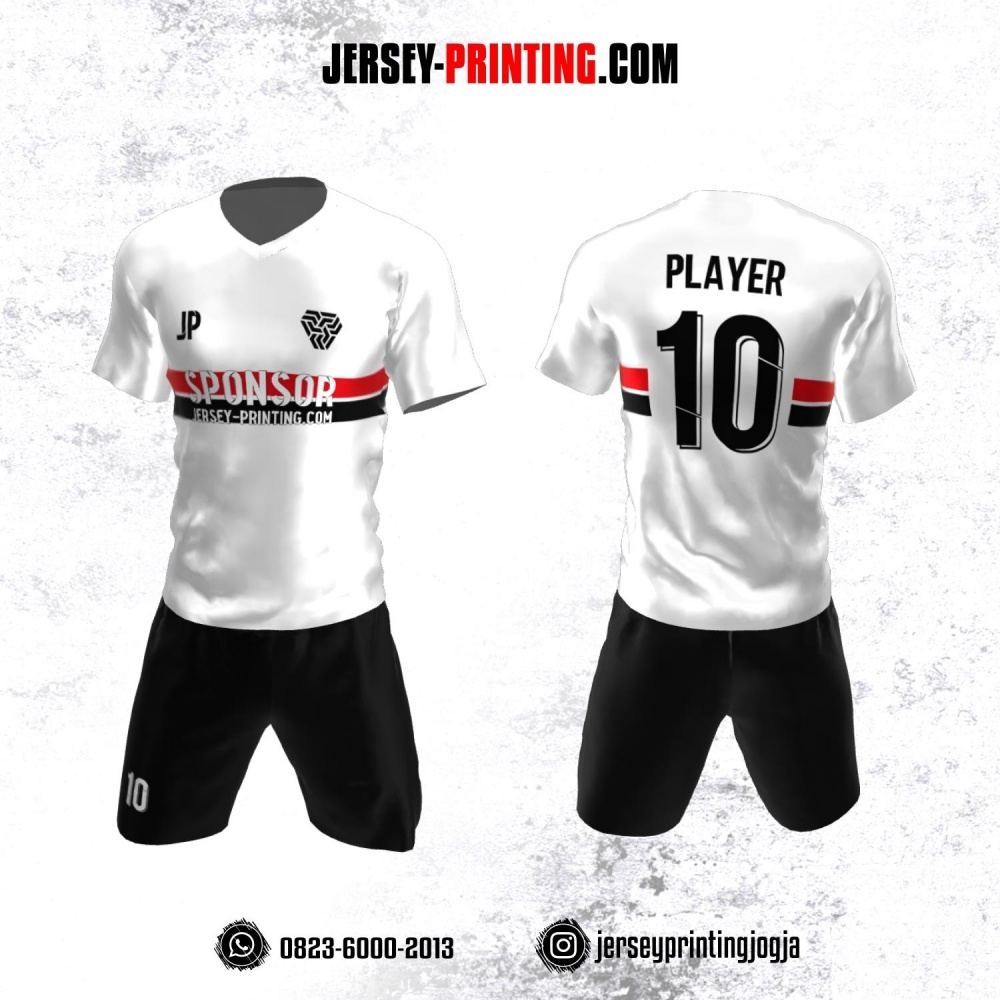 Jersey Futsal Putih Stripe Hitam Merah