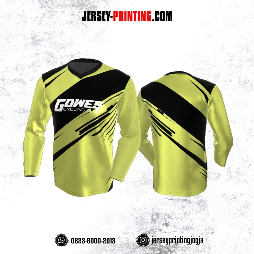Jersey Gowes Sepeda Hijau Corak Hitam Lengan Panjang