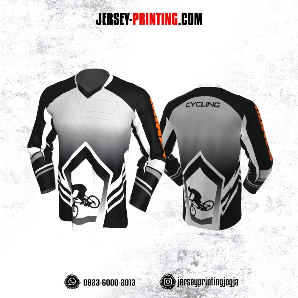 Jersey Gowes Sepeda Hitam Abu Putih Lengan Panjang