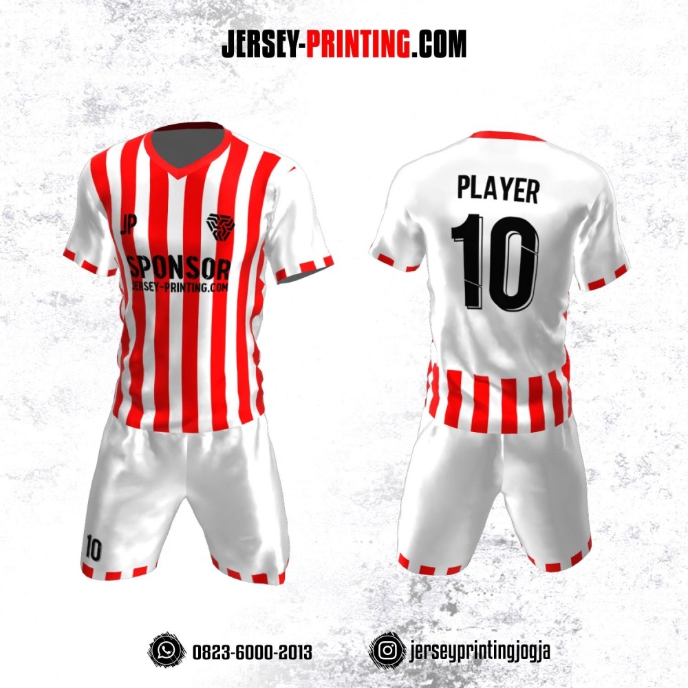 Jersey Futsal Putih Motif Stripe Merah