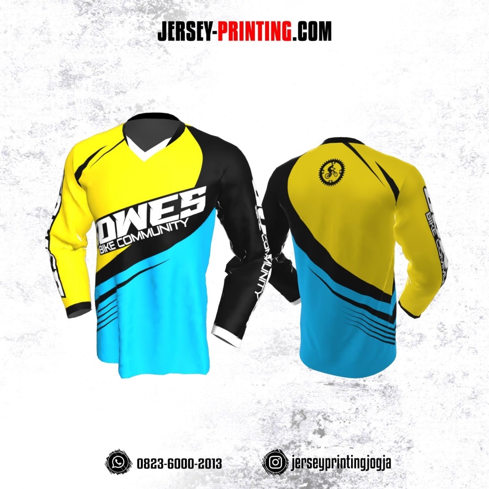 Jersey Gowes Sepeda Biru Kuning Hitam Lengan Panjang