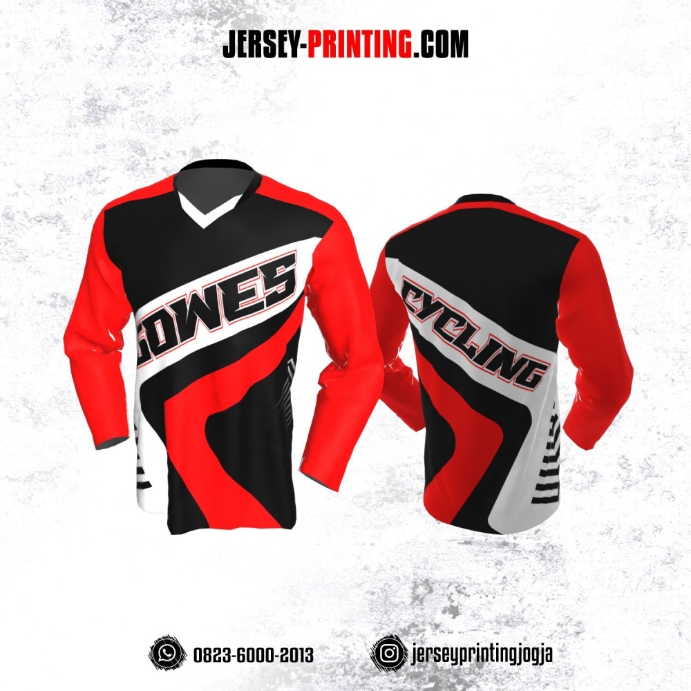 Jersey Gowes Sepeda Merah Hitam Putih Lengan Panjang