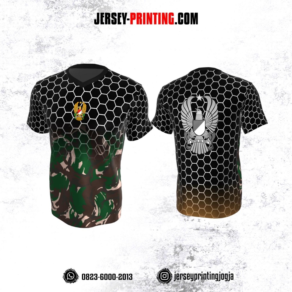 Jersey Militer Tentara TNI AD Angkatan Darat Hitam Putih Hijau Coklat Motif Honeycomb dan Loreng