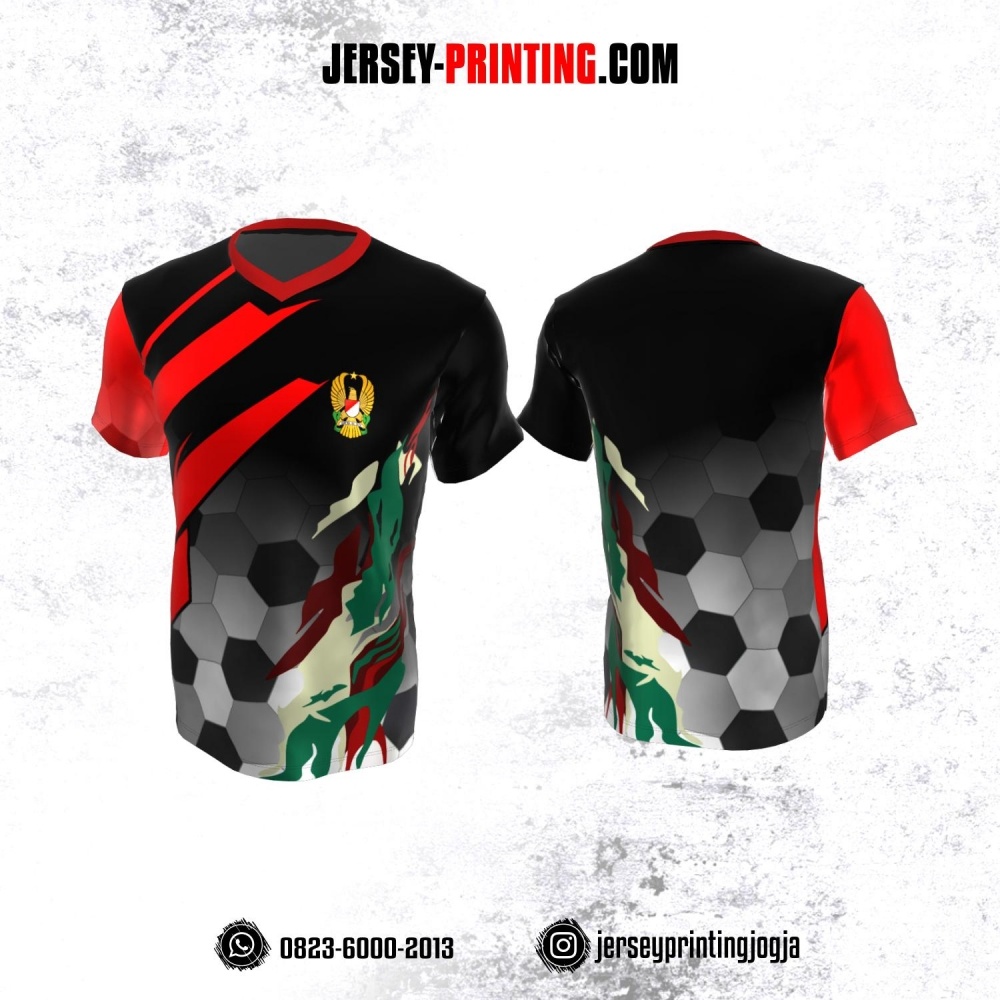 Jersey Militer Tentara TNI AD Angkatan Darat Hitam Abu-abu Merah Hijau Motif Hexagon