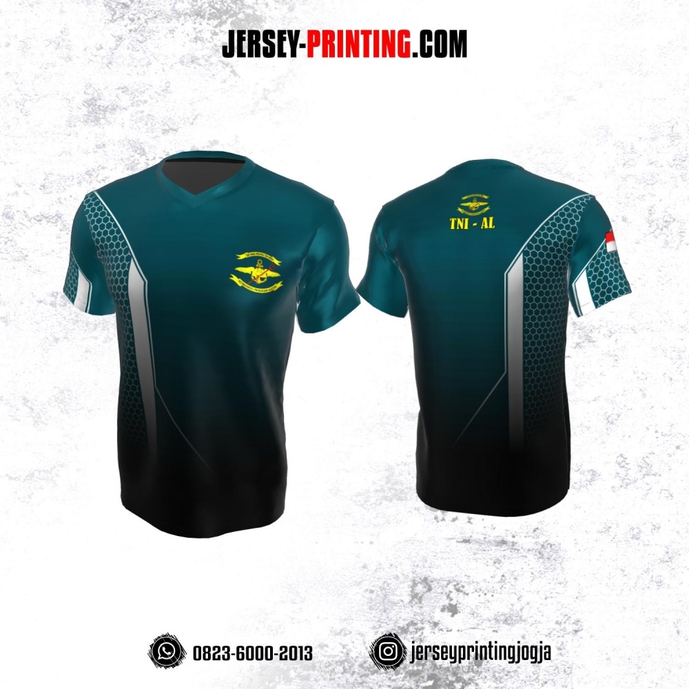 Jersey Militer Tentara TNI AL Angkatan Laut Teal Hitam Putih Motif Honeycomb
