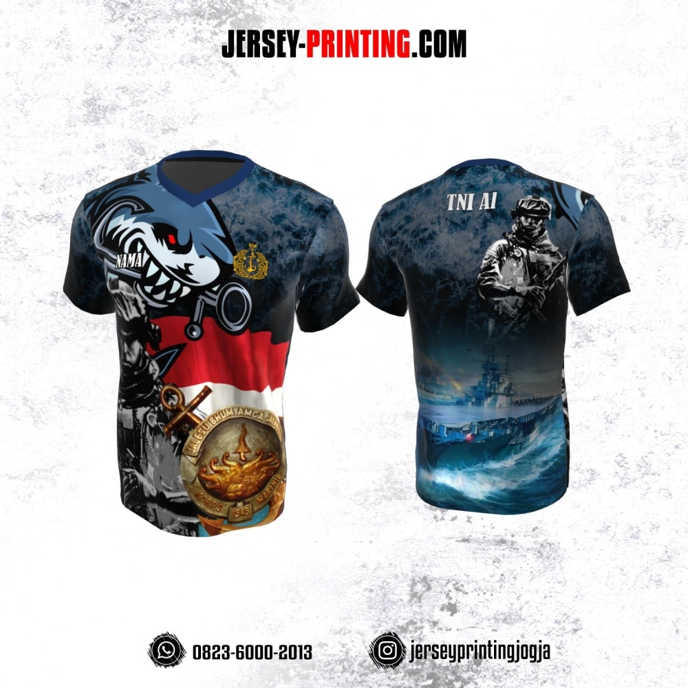 Jersey Militer Tentara TNI AL Angkatan Laut Biru Hitam Motif Lautan