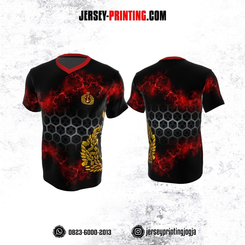 Jersey Militer Tentara TNI AL Angkatan Laut Hitam Merah Abu-abu Motif Honeycomb