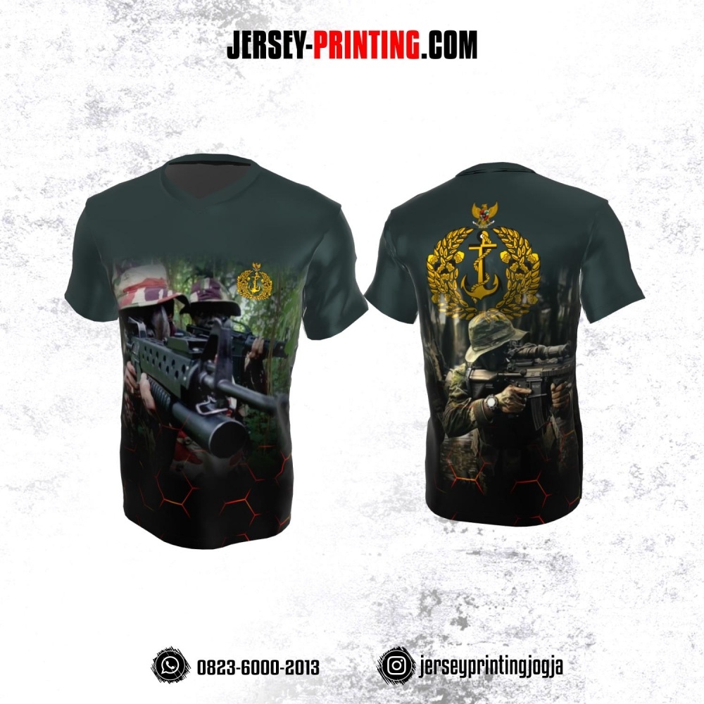 Jersey Militer Tentara TNI AL Angkatan Laut Hijau Hitam Merah Motif Hexagon