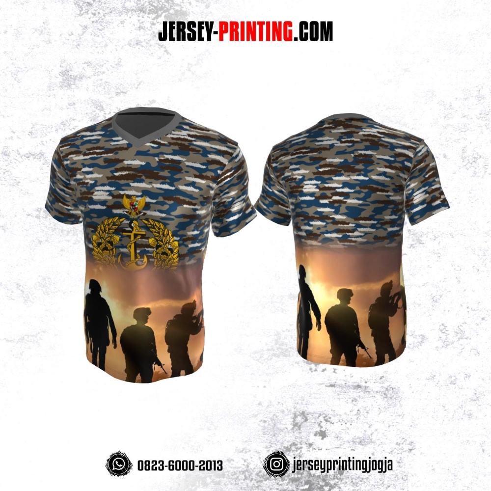 Jersey Militer Tentara TNI AL Angkatan Laut Coklat Orange Biru Putih Motif Loreng