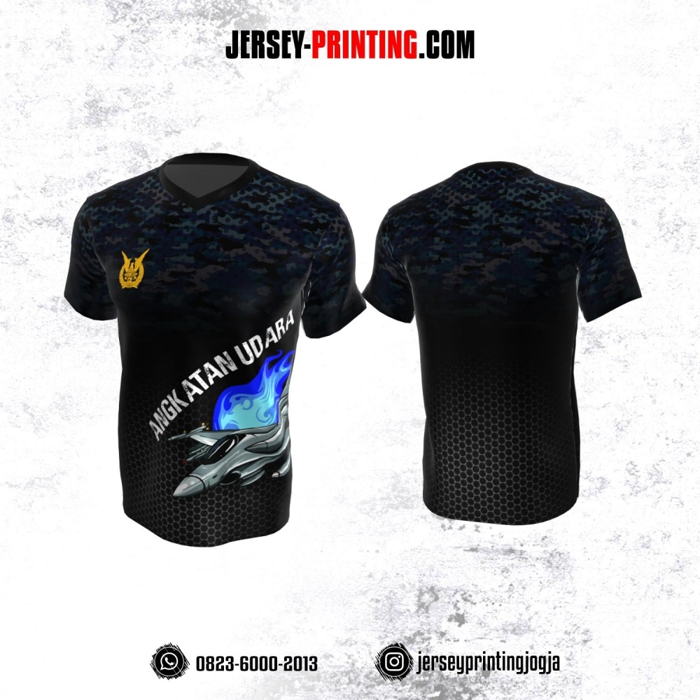 Jersey Militer Tentara TNI AU Angkatan Udara Hitam Abu-abu Biru Motif Honeycomb