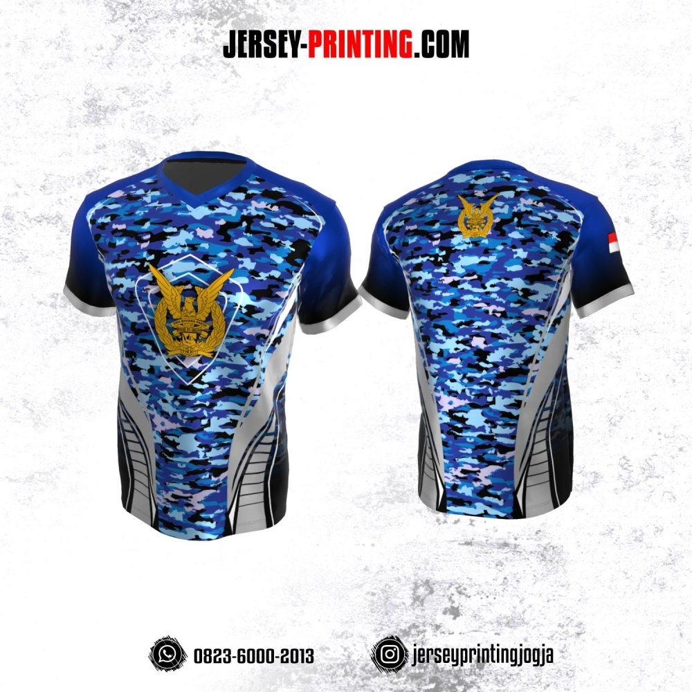 Jersey Militer Tentara TNI AU Angkatan Udara Navy Biru Abu-abu Hitam Motif Loreng