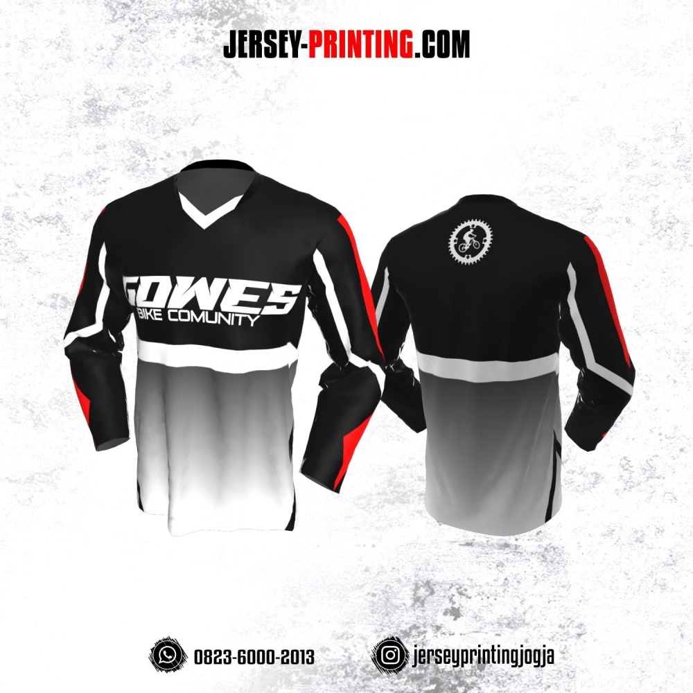 Jersey Gowes Sepeda Hitam Merah Abu Lengan Panjang